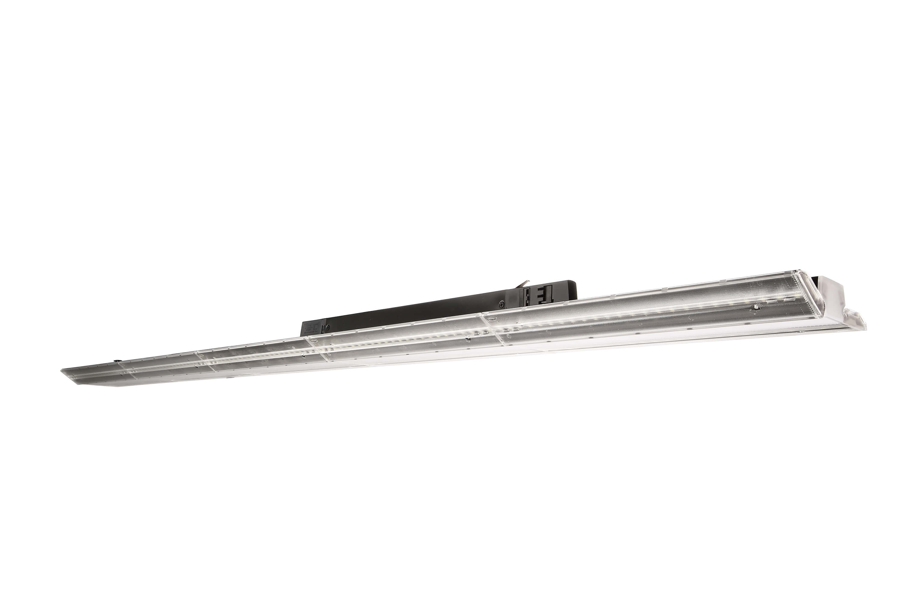 Die LINEAR PRO FOLD 3-Phasen Stromschienenleuchte ist die ideale Lösung für die Beleuchtung von Verkaufsregalen. Durch ihre spezielle Optik eignet sie sich hervorragend für die Beleuchtung von Regalgängen. Damit ist sie in der Lage, typische Anwendungsszenarien auf beiden Seiten des Ganges über die gesamte Höhe gleichmäßig auszuleuchten. Gleichzeitig sorgt der diffuse Lichteinsatz in der Mitte für eine gleichmäßige Ausleuchtung des Ganges selbst.