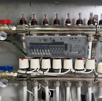 Module permettant la commande indépendante de 12 têtes thermoélectriques maximum pour le chauffage par le sol à eau chaude, les sources de chaleur et les pompes de circulation, en fonction des instructions des thermostats du système. Installation facile directement dans le collecteur au sol.