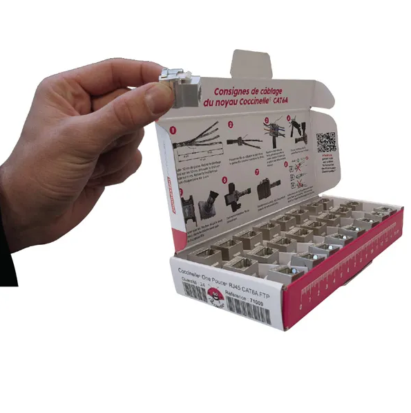 Découvrez notre connecteur RJ45 Jack Coccinelle® One Pouce Keystone CAT6A FTP, vendu en boite de 24 pièces. Déjà plus d'un million vendus dans le monde !