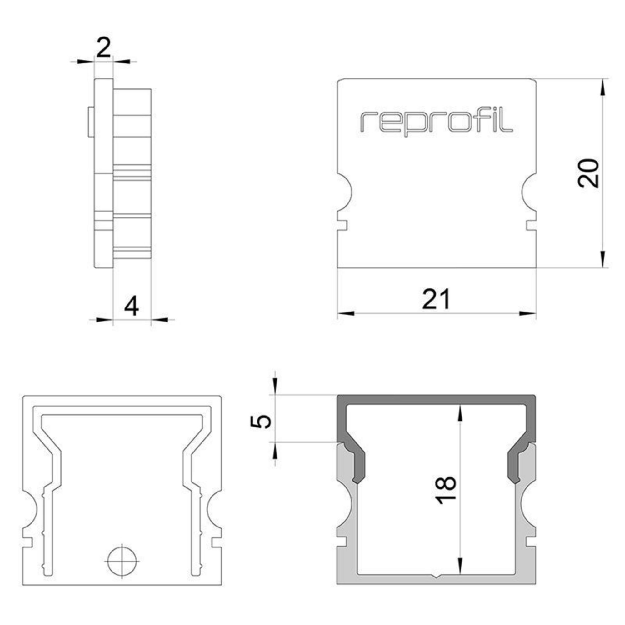 Zubehör, Endkappe H-AU-02-15 Set 2 Stk, Länge: 21 mm, Breite: 6 mm, Höhe: 20 mm